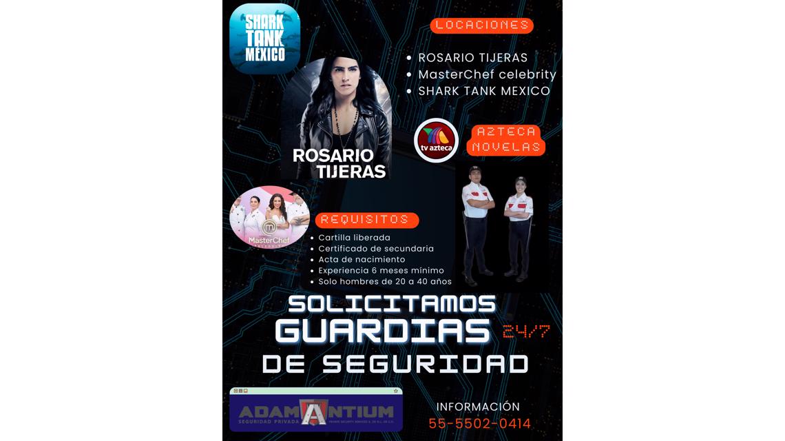 Solicitamos personal masculino con experiencia en el ramo de seguridad privada entre 20 a 40 años de edad, con cartilla liberada obligatoriamente para resguardo de talento y equipo de producción.